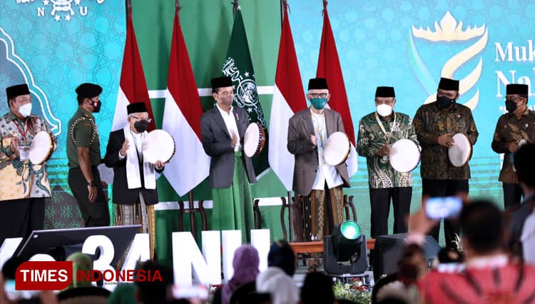 TIMES Serang/Presiden Jokowi (Joko Widodo) membuka secara resmi Muktamar Ke-34 Nahdlatul Ulama di Pondok Pesantren Darussa’adah, Gunung Sugih, Lampung Tengah, Rabu (22/12/2021). (FOTO: Moh Ramli/TIMES Indonesia)